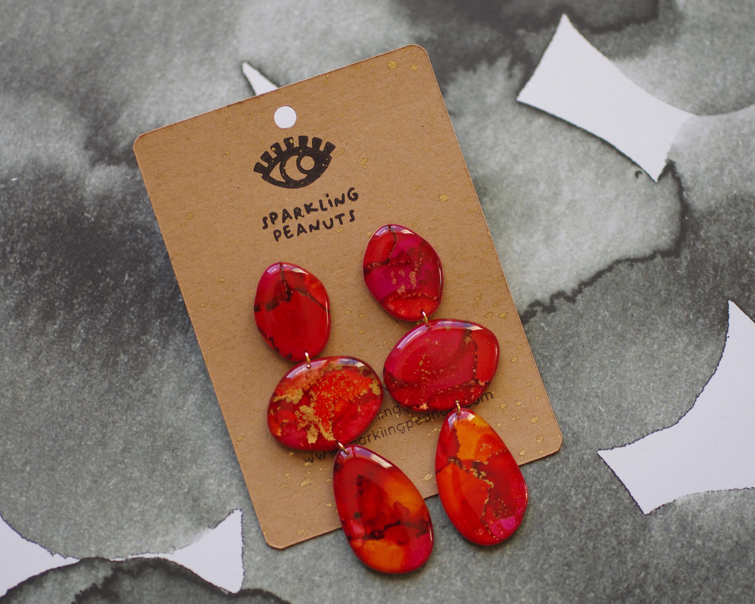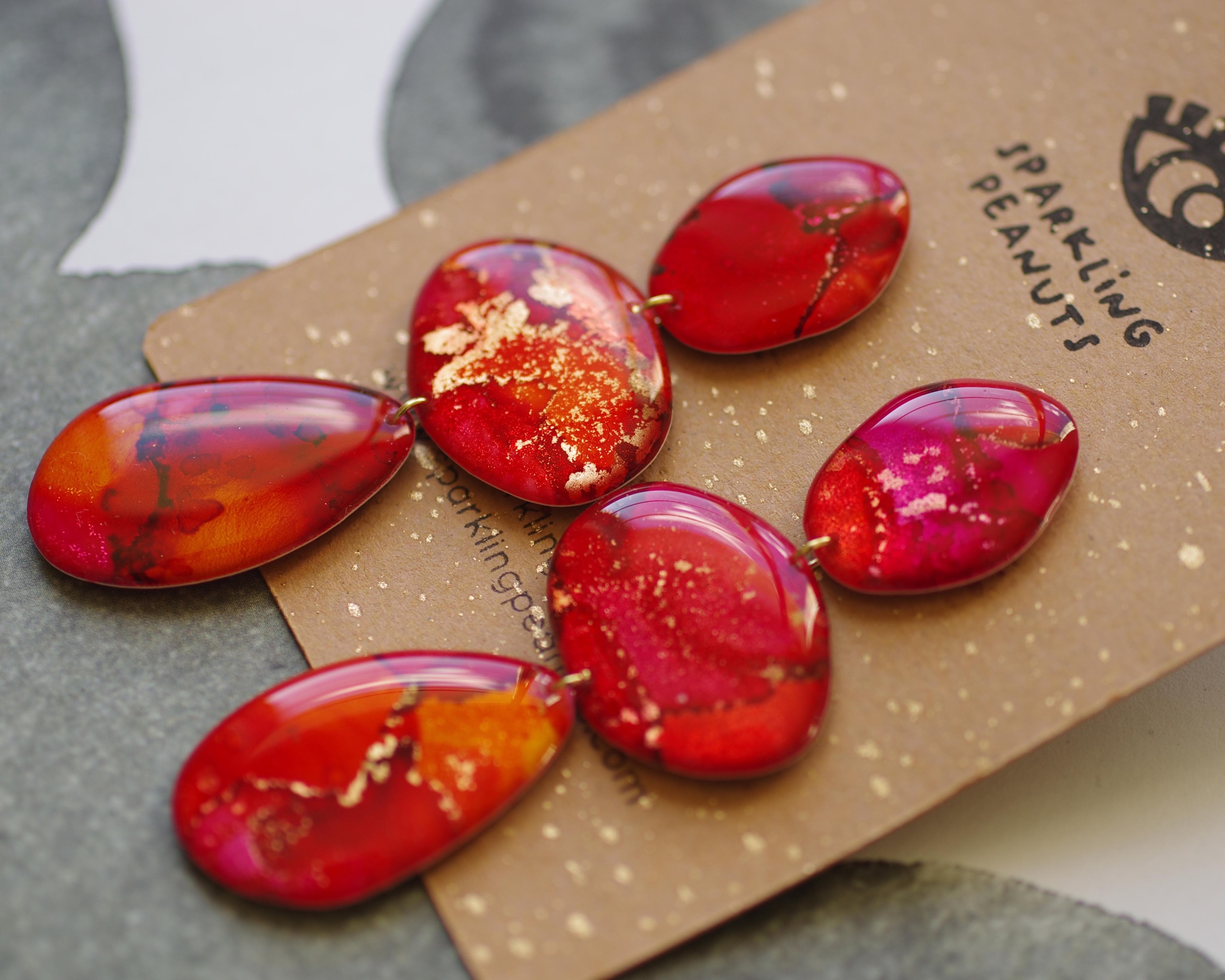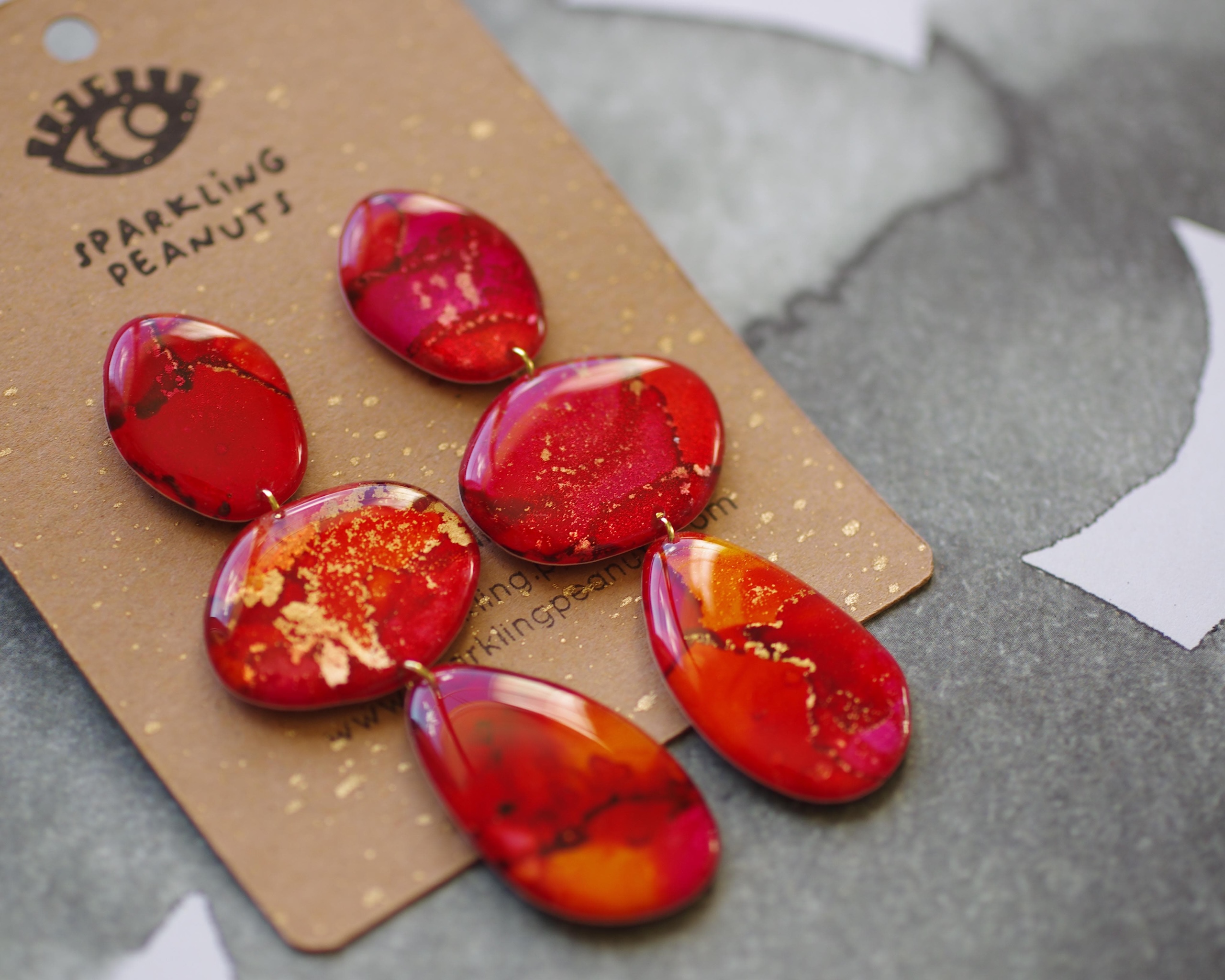 Boucles d’oreilles uniques en papier et résine epoxy pour un fini brillant et élégant. Ultra légères donc très peu de poids pour vos oreilles. Les couleurs peuvent varier légèrement en fonction des écrans.