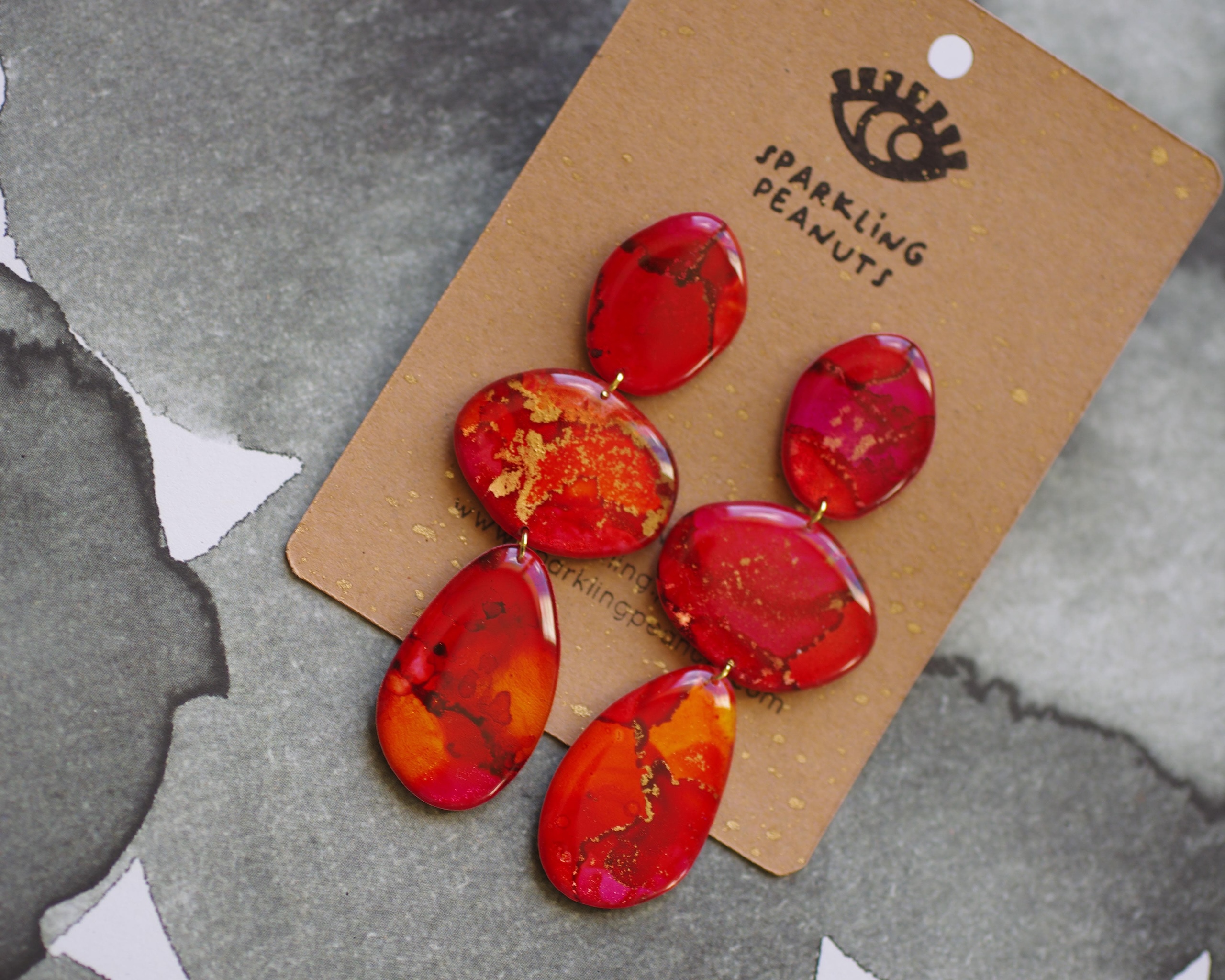 Boucles d’oreilles galets rouge & orange